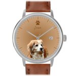 Gedrucktes Kooikerhund-Motiv auf dem Zifferblatt – dezent, charakterstark und langlebig.