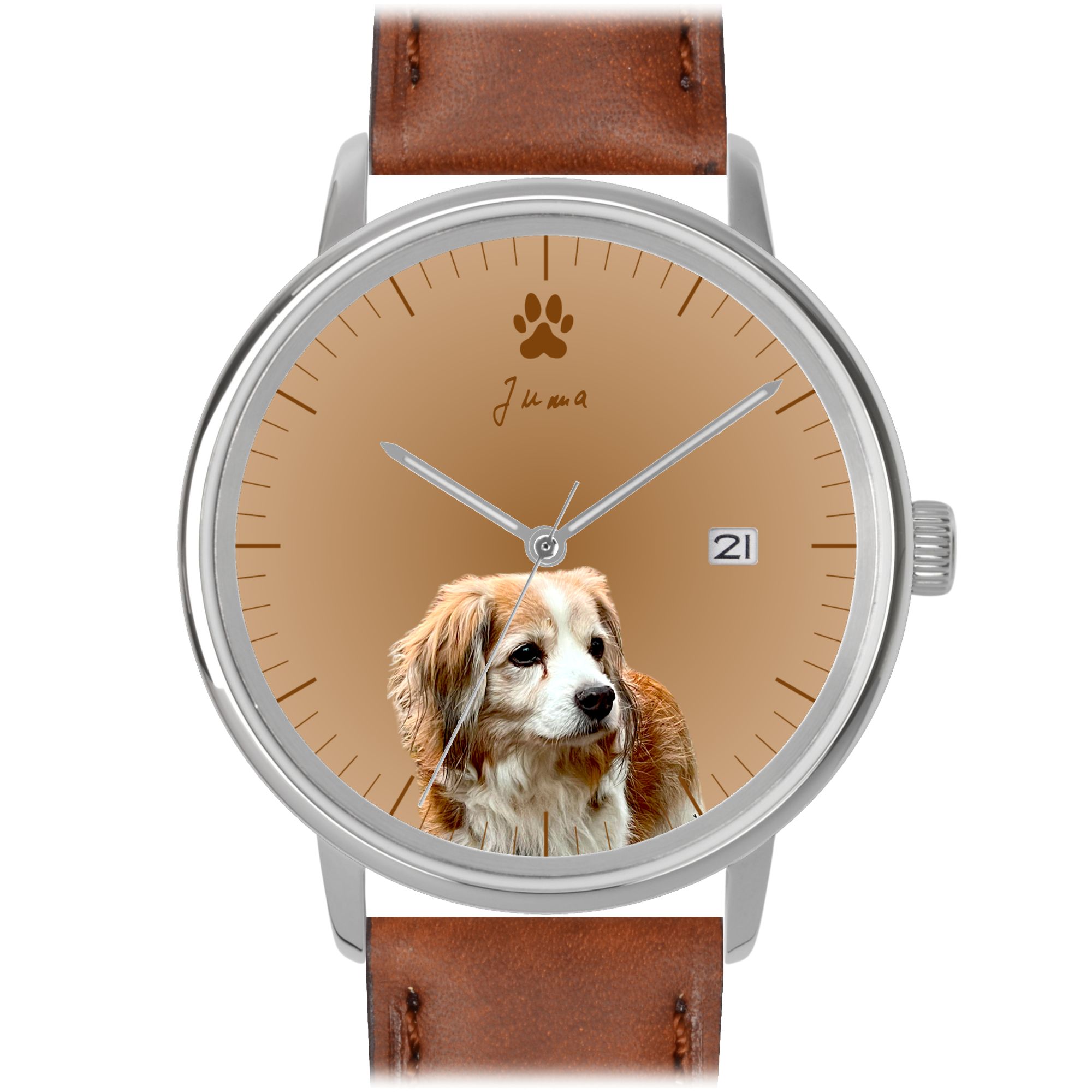 Eigener Hund möglich: Auf Wunsch drucken wir das Foto/Illustration deines eigenen Hundes aufs Zifferblatt – echtes Unikat statt Massenware.